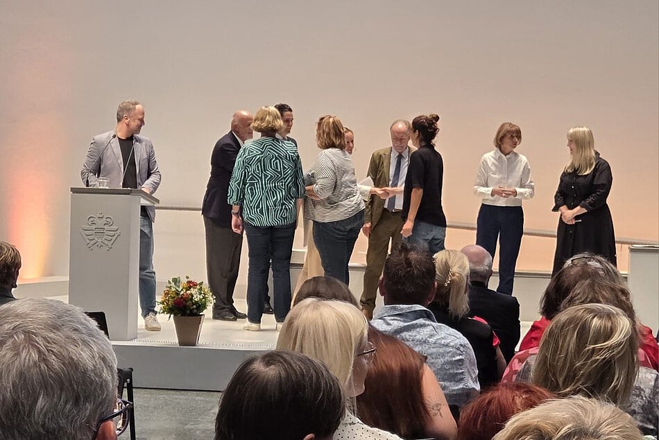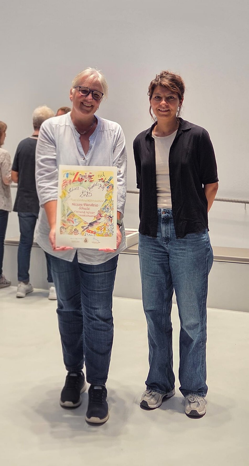 Am 01.09.2025 war es so weit, die Nelson-Mandela-Schule erhielt im Rathaus die Urkunde zum dritten Platz beim Kostümwettbewerb “Goldene Nähmaschine”.