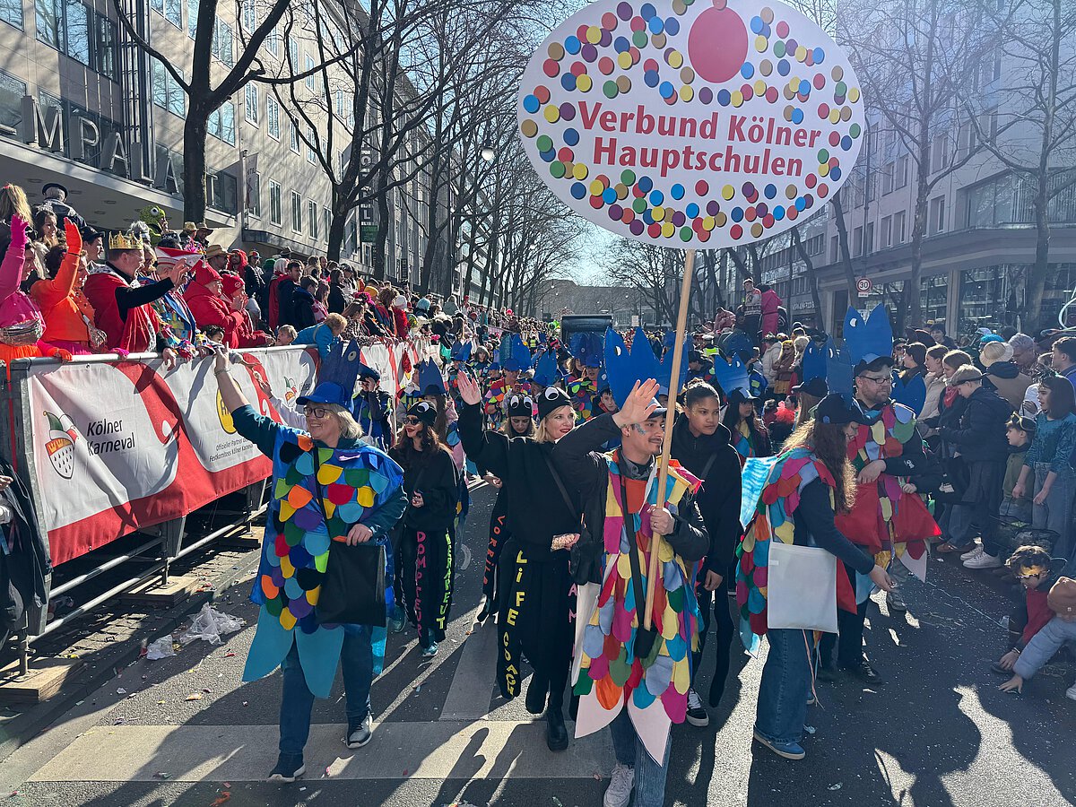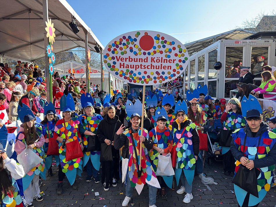 Unter dem Motto “Mer echte Hauptschulljecke sin de bunteste Fesch em Becke!” präsentierten sich unsere Schülerinnen und Schüler mit viel Kreativität, Einsatz und kölschem Hätz. Die aufwendig gestalteten Kostüme, das stimmige Gesamtbild sowie die mitreißende Stimmung unserer Gruppe überzeugten die Jury.